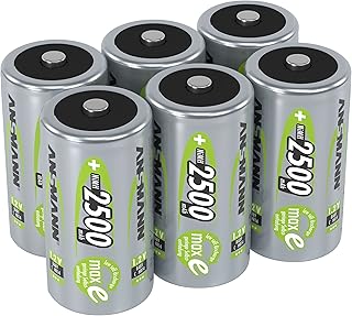 Pile ANSMANN C 2500 mAh NiMH 1,2 V (Lot de 6) - Batteries Rechargeables Baby C, Faible autodécharge maxE pour Une Utilisation Pendant Plusieurs années