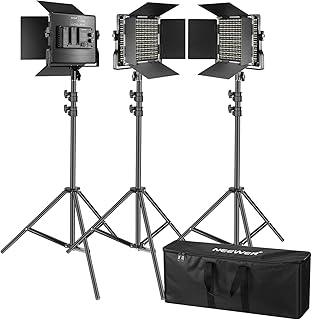 Neewer Lot de 3 480 LED Lampe Vidéo Bicolore Lumière Réglable 3200-5600K CRI 96+ avec Support en U et Pied de Lumière pour Youtube Studio Vidéo