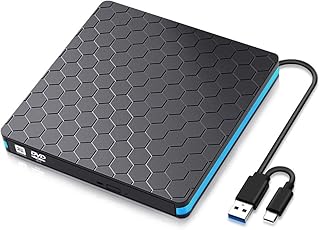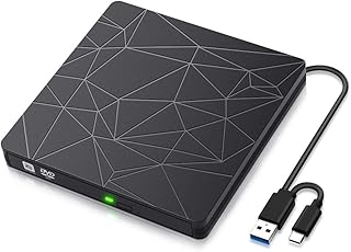 Lecteur CD DVD Externe USB 3.0 et Type C, Graveur CD DVD Externe Portable, Graveur et Lecteur de DVD CD +/-RW ROM, Lecteur Optique Externe USB C pour Ordinateur Mac OS, Windows, Laptop, Desktop, PC