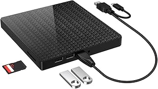 Lecteur CD/DVD Externe, SAWAKE Graveur DVD/CD Externe USB 3.0 et Type-C, Ports USB, Slot SD/TF, Ultra-Mince Portable, External Drives pour Windows XP/7/8/10, Macbook, iMac, Laptop, Desktops, etc