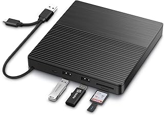 Lecteur CD/DVD Externe, Graveur CD DVD Externe USB3.0,&Type-C, Double Ports USB, Slot SD/TF, Ultra-Mince Portable,pour Windows 7/8/10 / Vista/XP/Mac OS,Laptop,etc