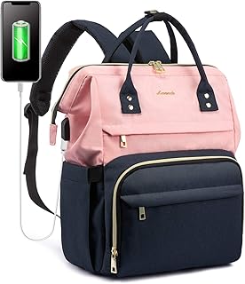 LOVEVOOK Sac à Dos Ordinateur Portable 15.6 Pouces, Imperméable Sac a Dos Femme Sac à Dos PC Portable Chic avec Port de Chargement USB pour Collège Affaire Scolaire Voyage, Rose Marine